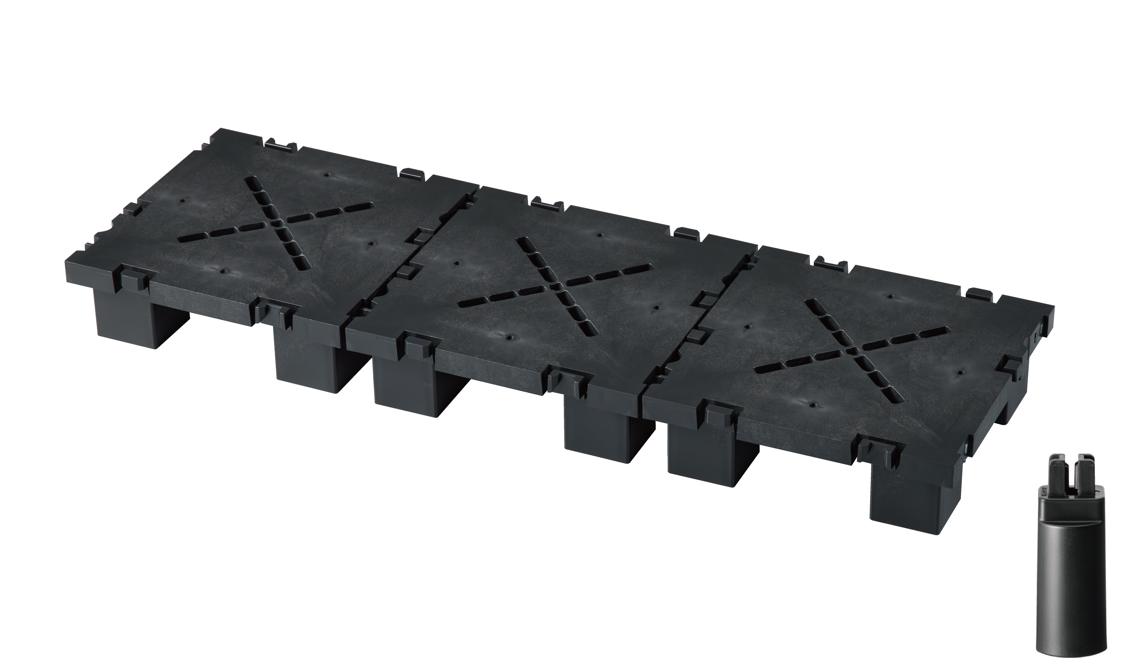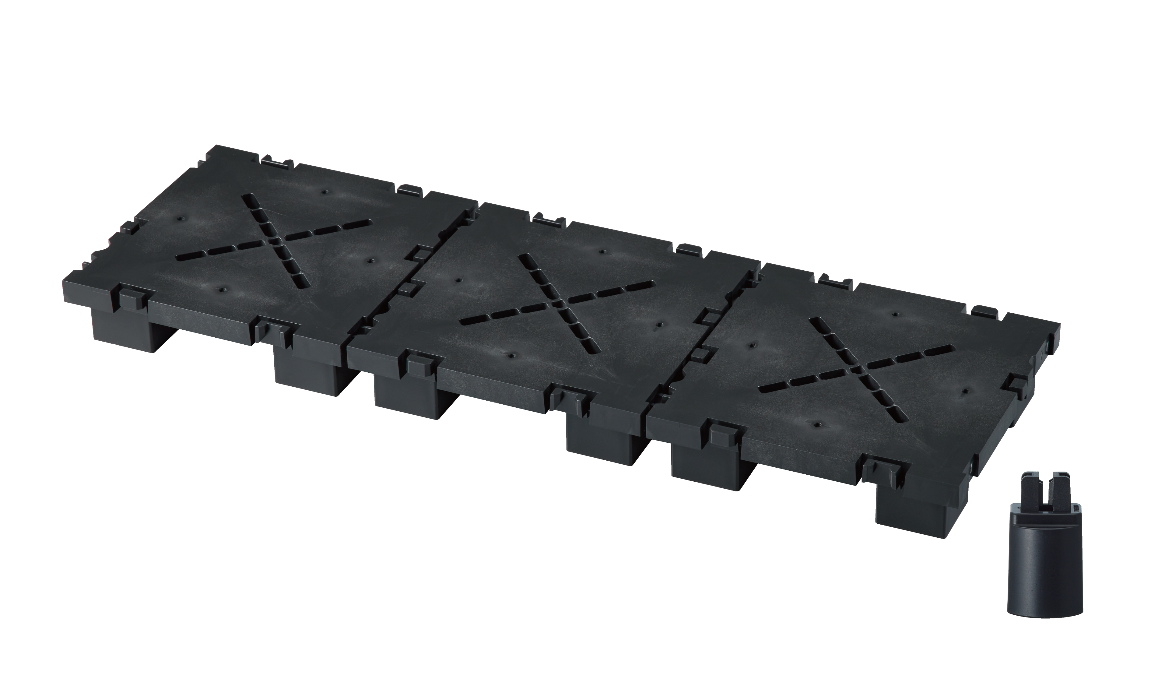 100%リサイクルPP 樹脂を使用した溝配線タイプのフリーアクセスフロア(OAフロア) です。